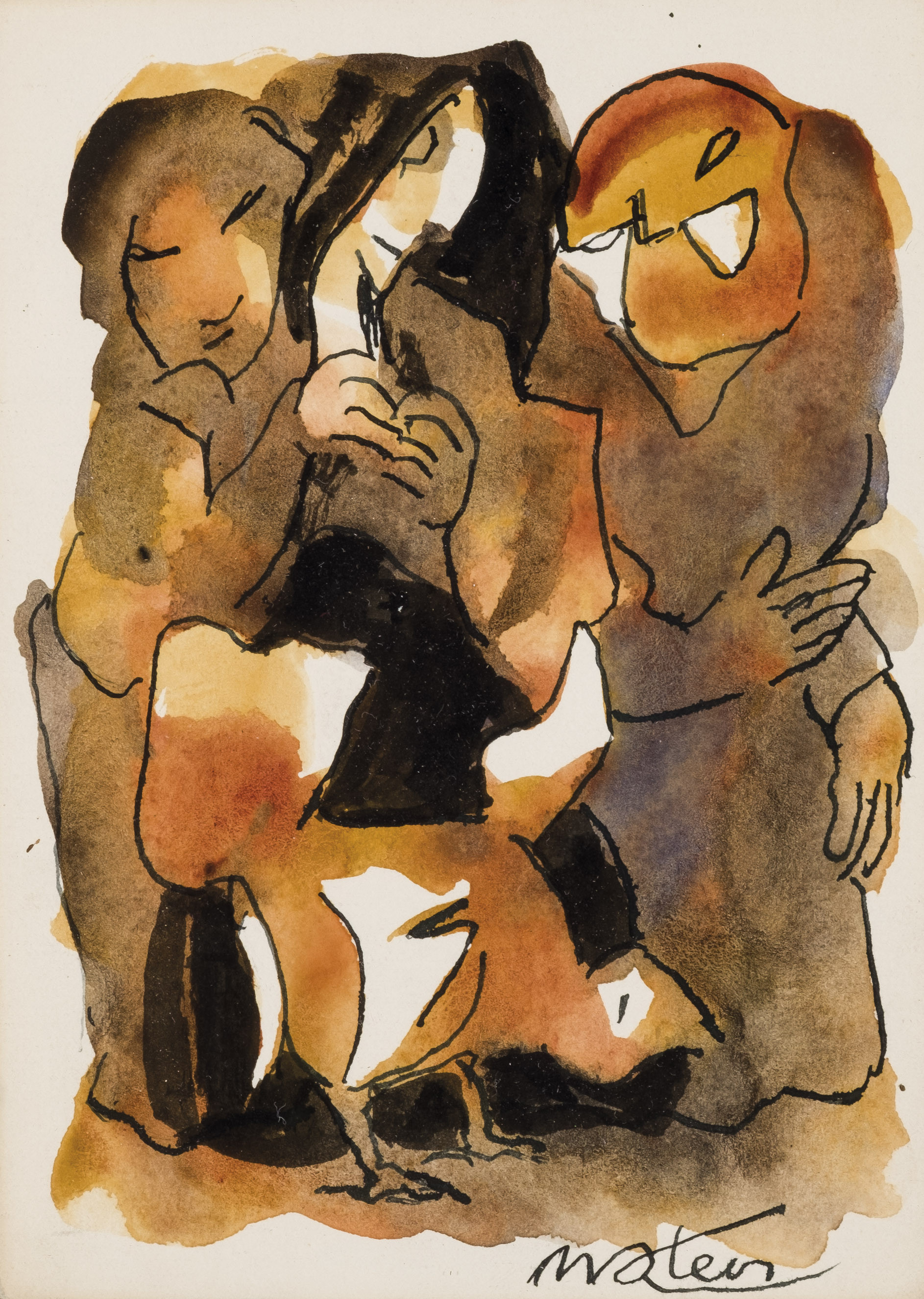 "Personajes". Tinta y acuarela sobre papel. Firmado en el ángulo inferor derecho. 15 x 10 cm