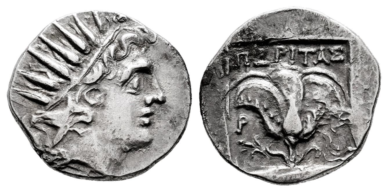 Islas de Caria. Rodas. Dracma. 88-84 a.C. (Hgc-1461). Anv.: Cabeza radiada de Helios a la derecha. Rev.: Rosa dentro de cuadrado incuso. . 2,07 g. MBC+. Est...110,00.