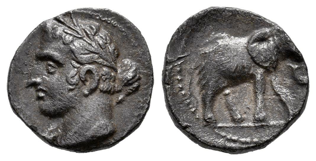 Acuñaciones Hispano-Cartaginesas. 1/4 shekel. 235-220 a.C. Cartagena (Murcia). (Abh-487). (Acip-555). (Sng Cop-293). Anv.: Cabeza de Melkart-Heracles laureada a izquierda, con clava. Rev.: Elefante a derecha. . 1,62 g. Leve roce en reverso. Preciosa pátina. Escasa en esta conservación. EBC-. Est...500,00.