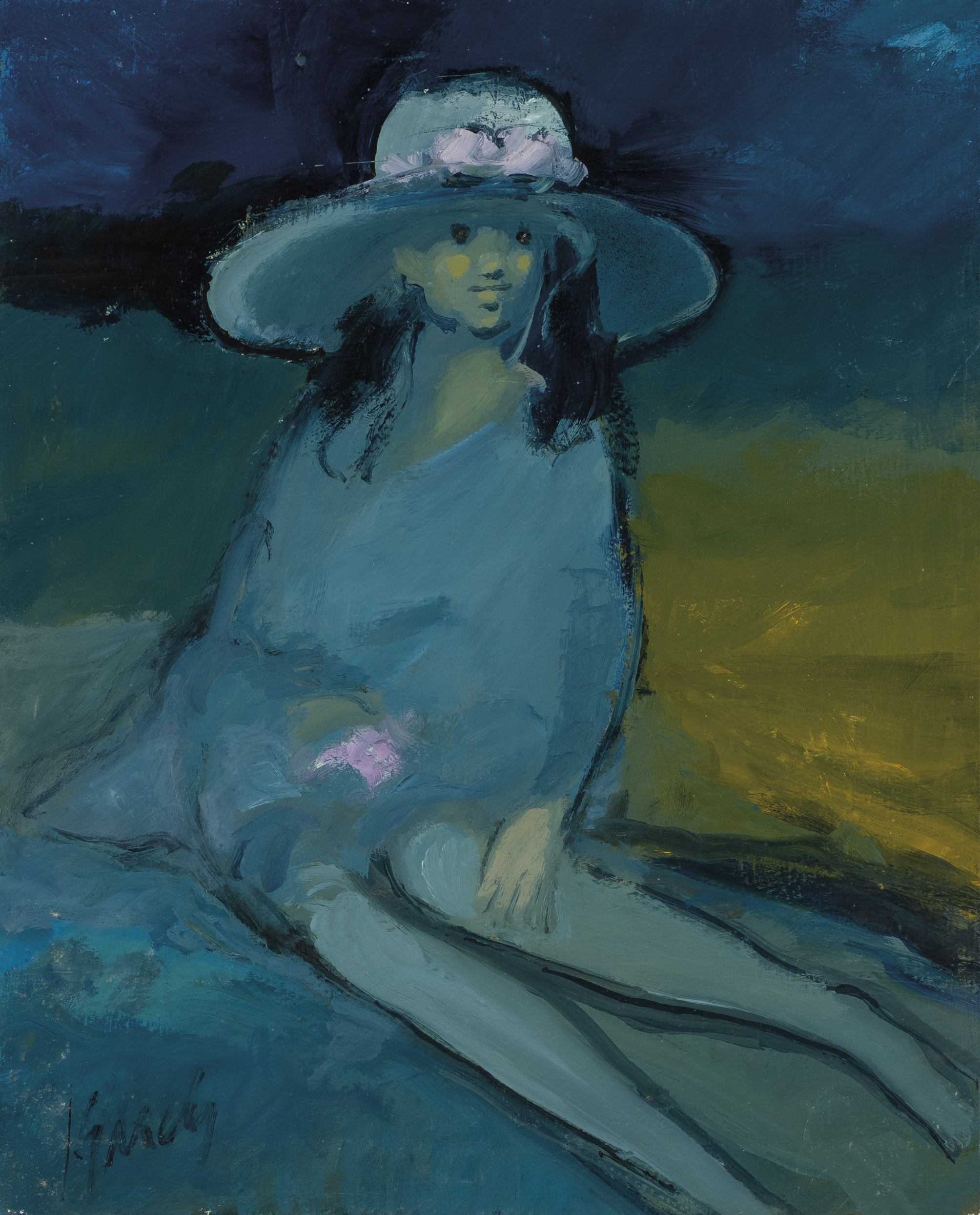 "Mujer con pamela". Óleo sobre lienzo. Firmado en el ángulo inferior izquierdo. 81 x 65 cm