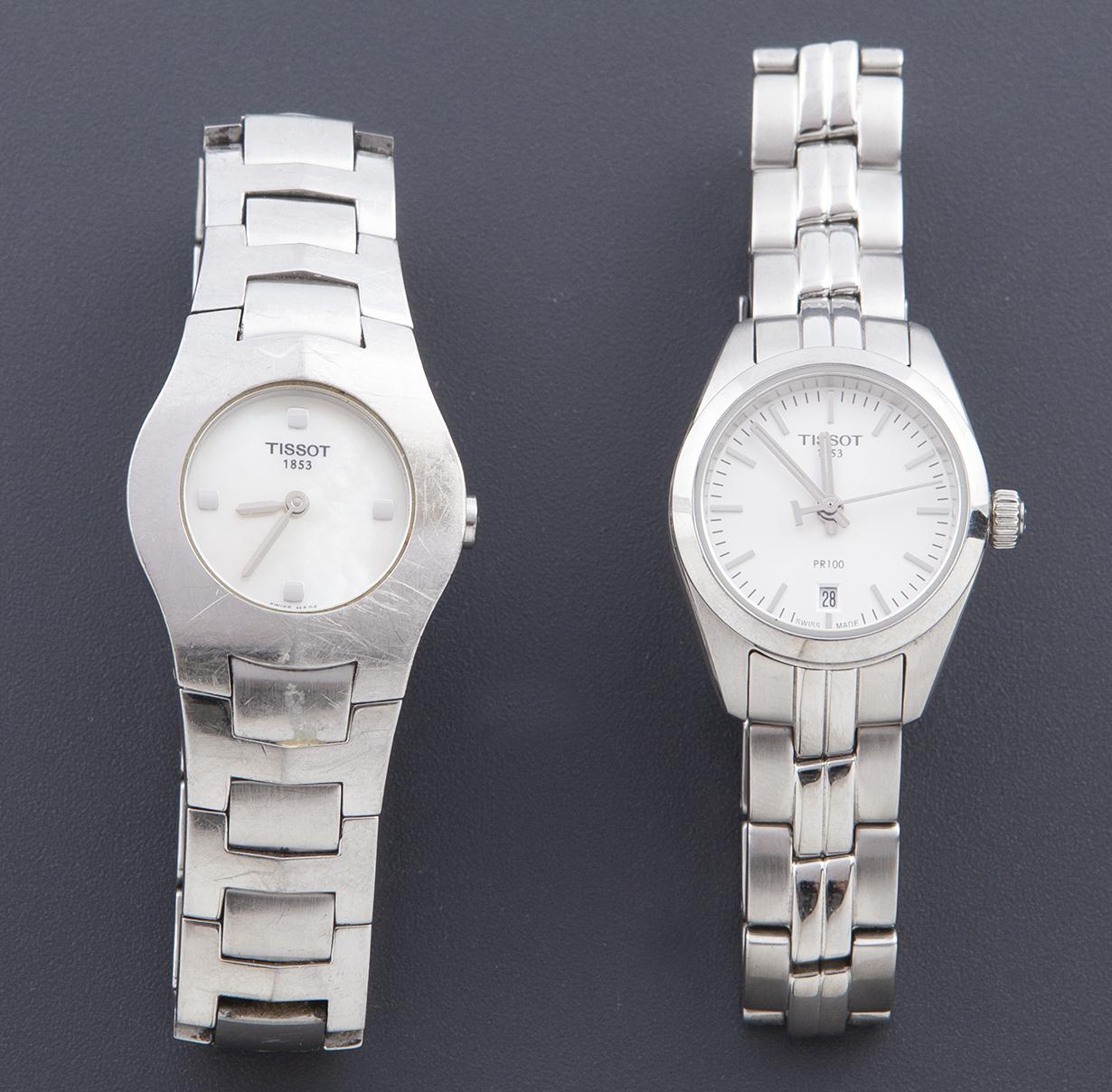Lote de dos relojes Tissot de señora con armix en acero, esferas redondas, uno de ellos con calendario a las seis.
