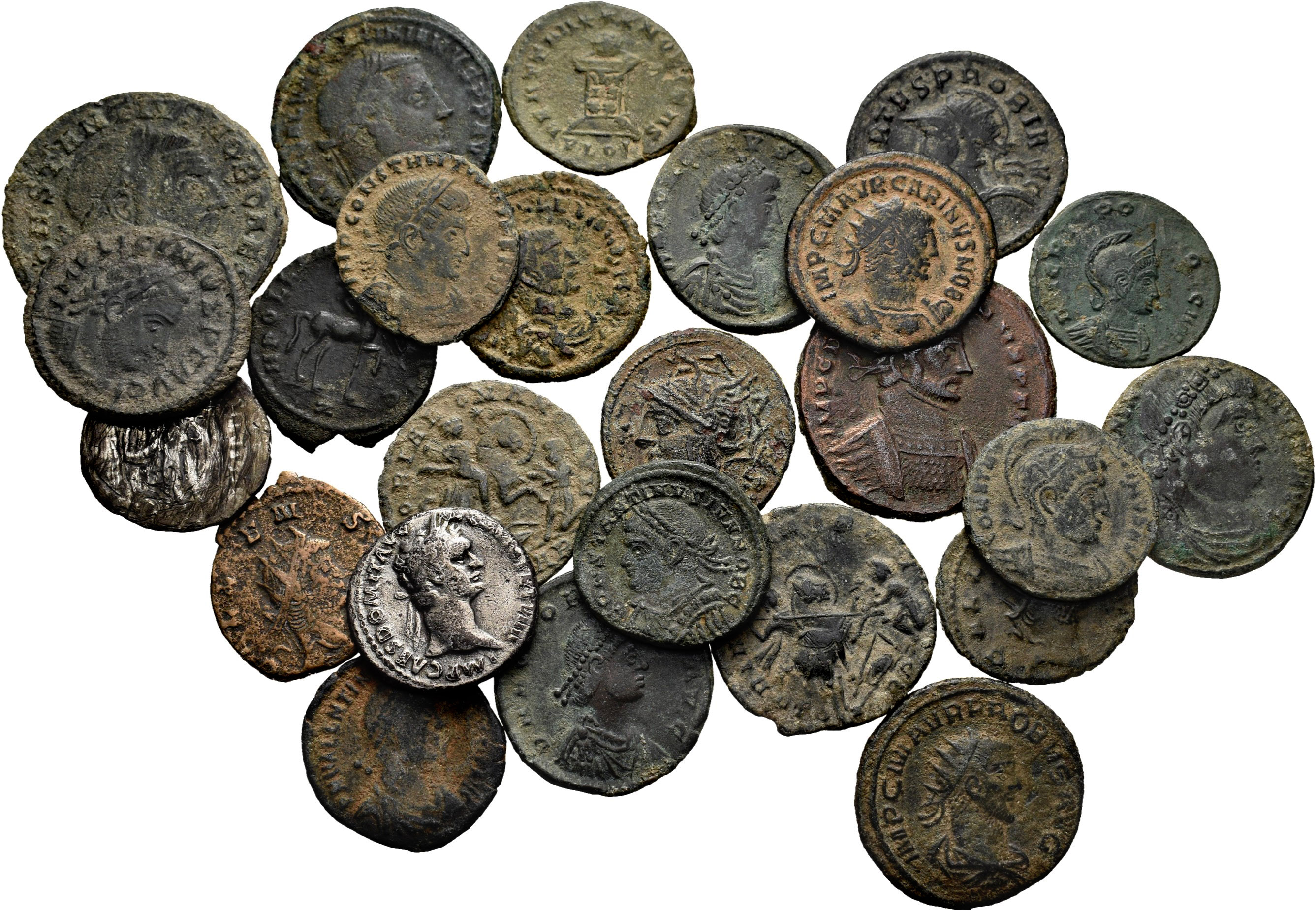 Lote de 25 monedas del Imperio Romano. Gran variedad de valores, Emperadores y cecas. Incluye alguna escasa. Ae/Ar. A EXAMINAR. BC-/MBC. Est...140,00.