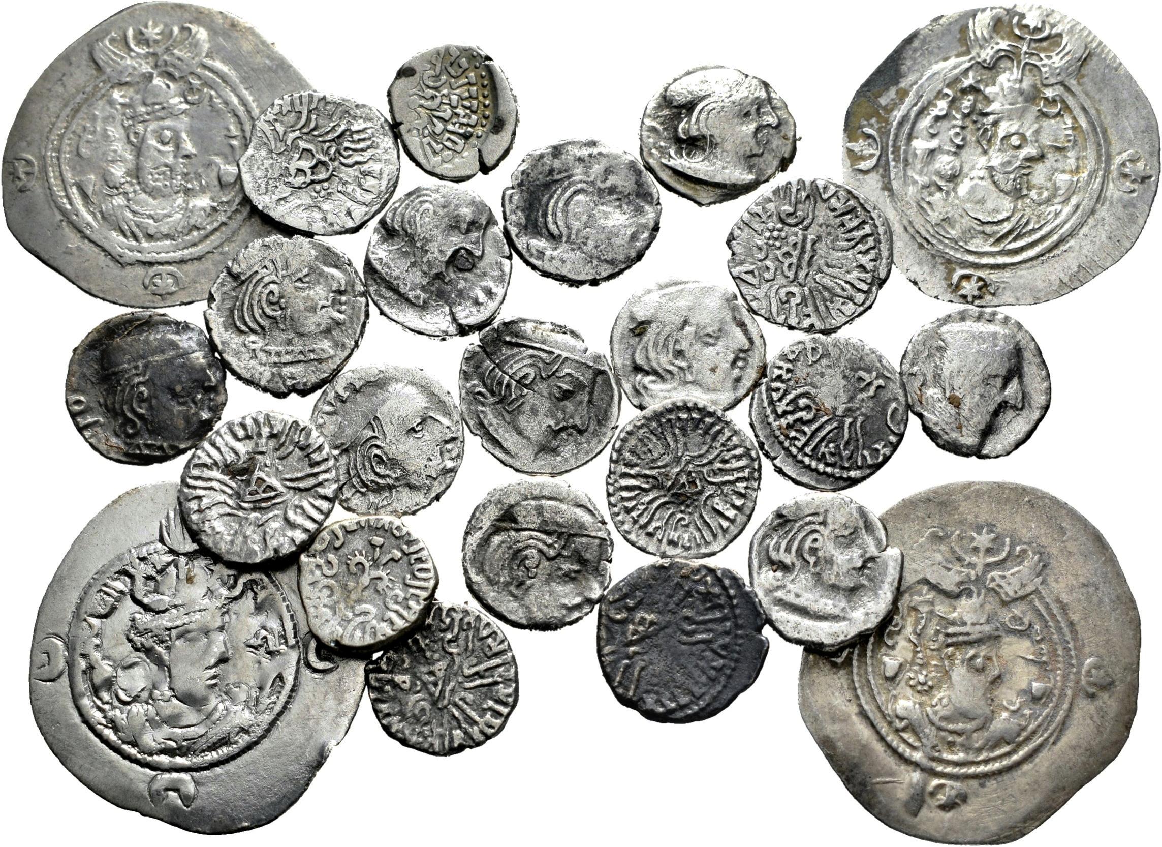 Lote de 24 monedas de mundo antiguo. Conjunto de 20 Dracmas de los Kshatrapas occidentales (Indoescitas) y 4 del Imperio Sasánida, a clasificar. Ag. Es imprescindible un riguroso examen. SOLO ENVÍO A ESPAÑA PENÍNSULA. NO SE ADMITE DEVOLUCIÓN. BC+/MBC. Est...250,00.
