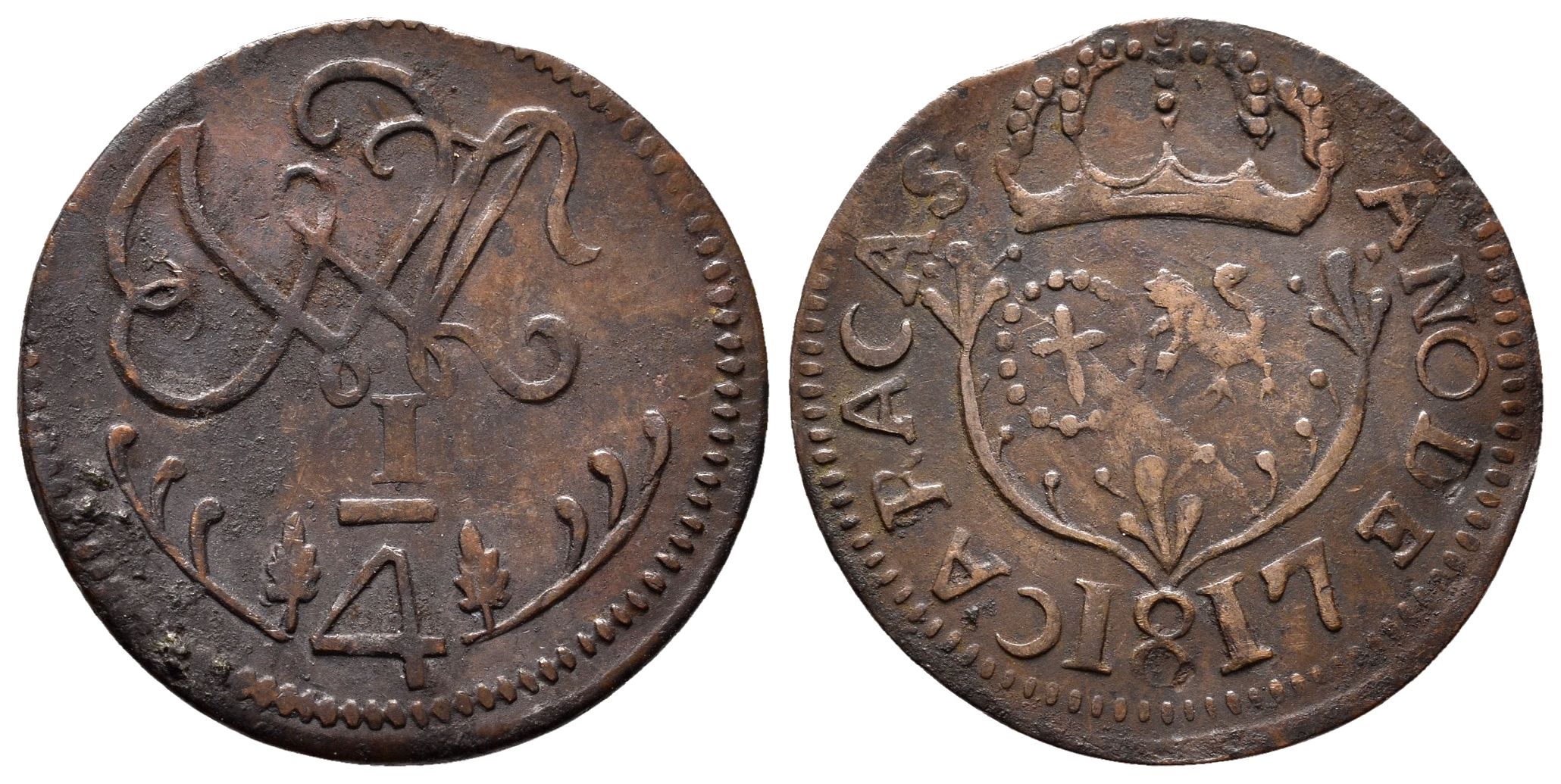 Fernando VII (1808-1833). 1/4 de real. 1817. Caracas. (Cal-1509). . 2,97 g. Fecha grande. MBC+. Est...120,00.