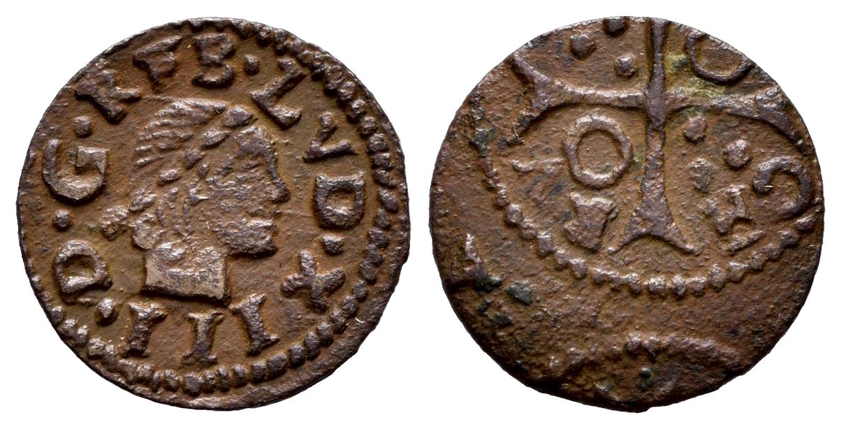 Levantamiento de Cataluña (1640-1652). Dinero. Cervera. (Cal-119). (Cru C.G-4592). . 0,87 g. A nombre de Louis XIII. Buen anverso. EBC-/MBC-. Est...70,00.