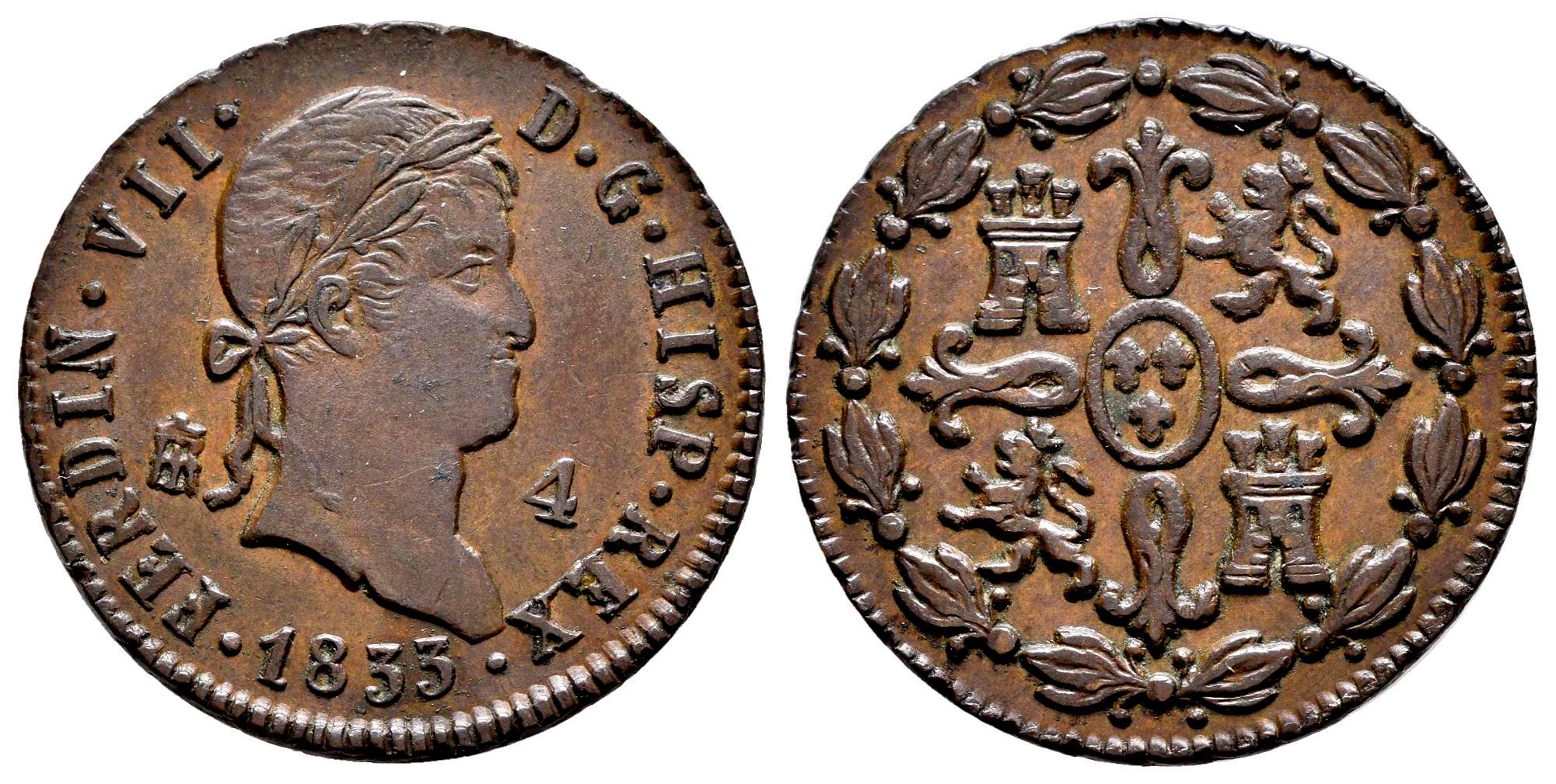 Fernando VII (1808-1833). 4 maravedís. 1833. Segovia. (Cal-188). . 4,94 g. MBC+. Est...50,00.