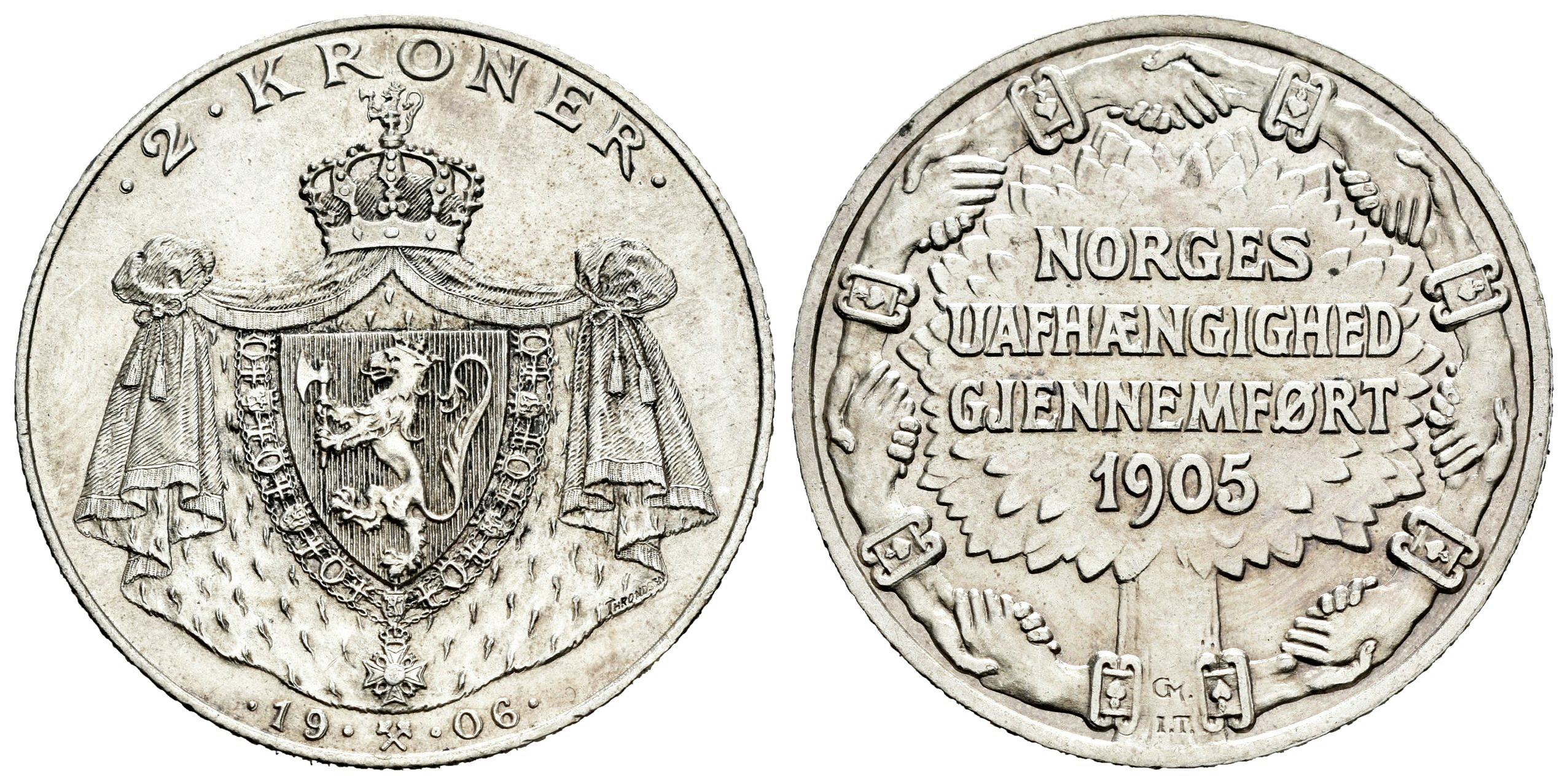 Noruega. Haakon VII. 2 kroner. 1906. Kongsberg. (Km-363). . 15,03 g. Conmemora la independencia de Noruega. Brillo original. SC-. Est...140,00.