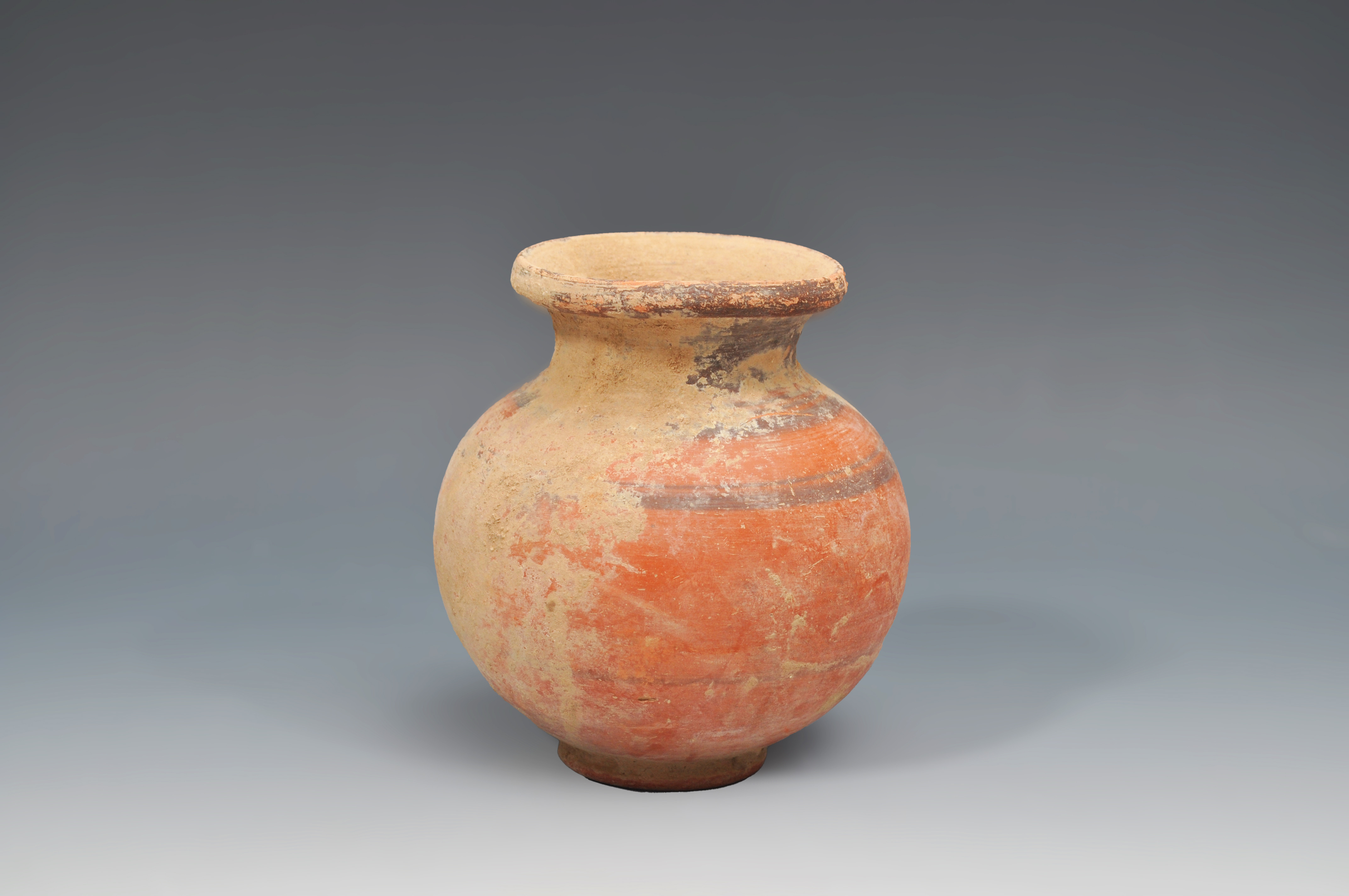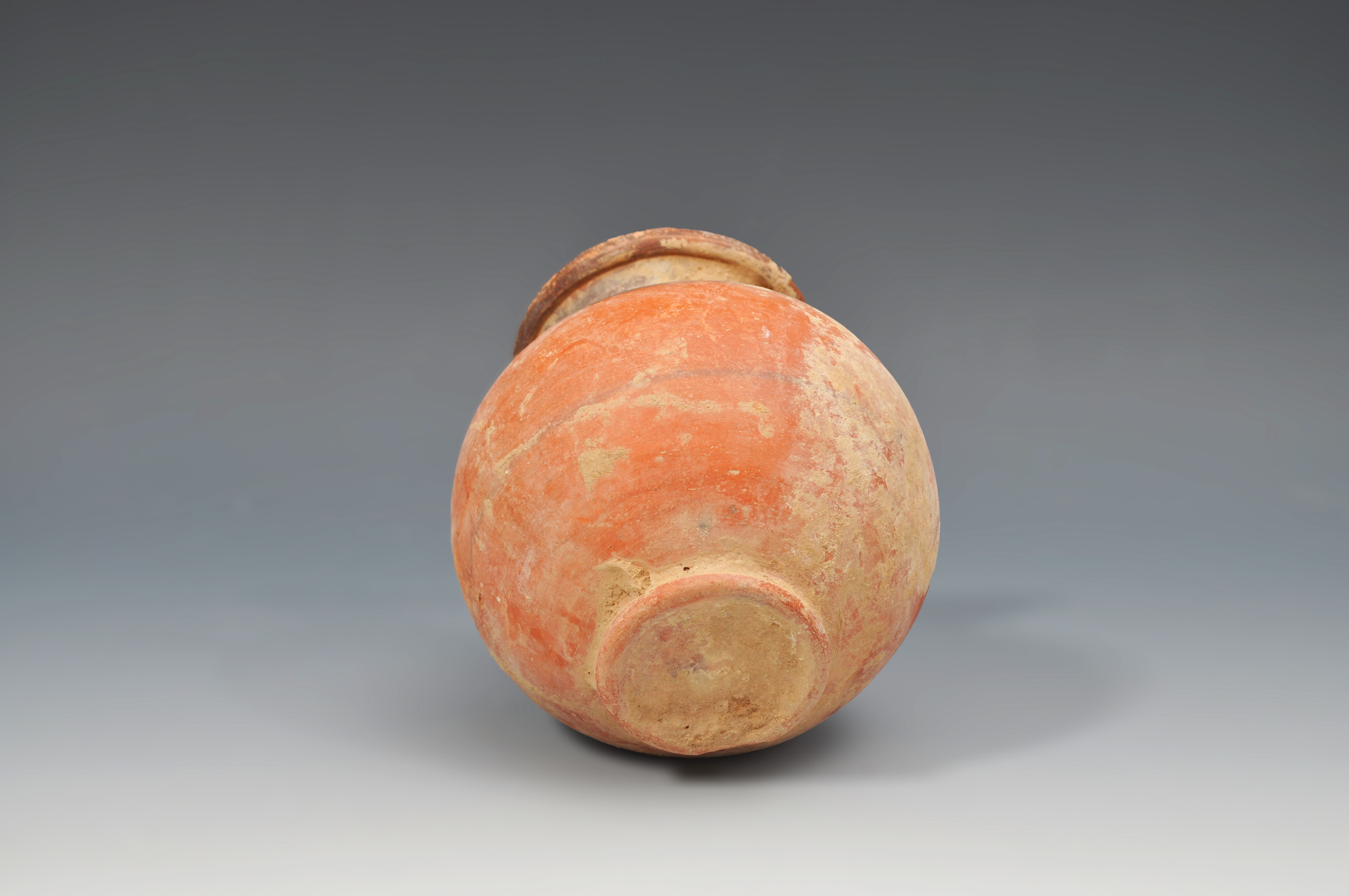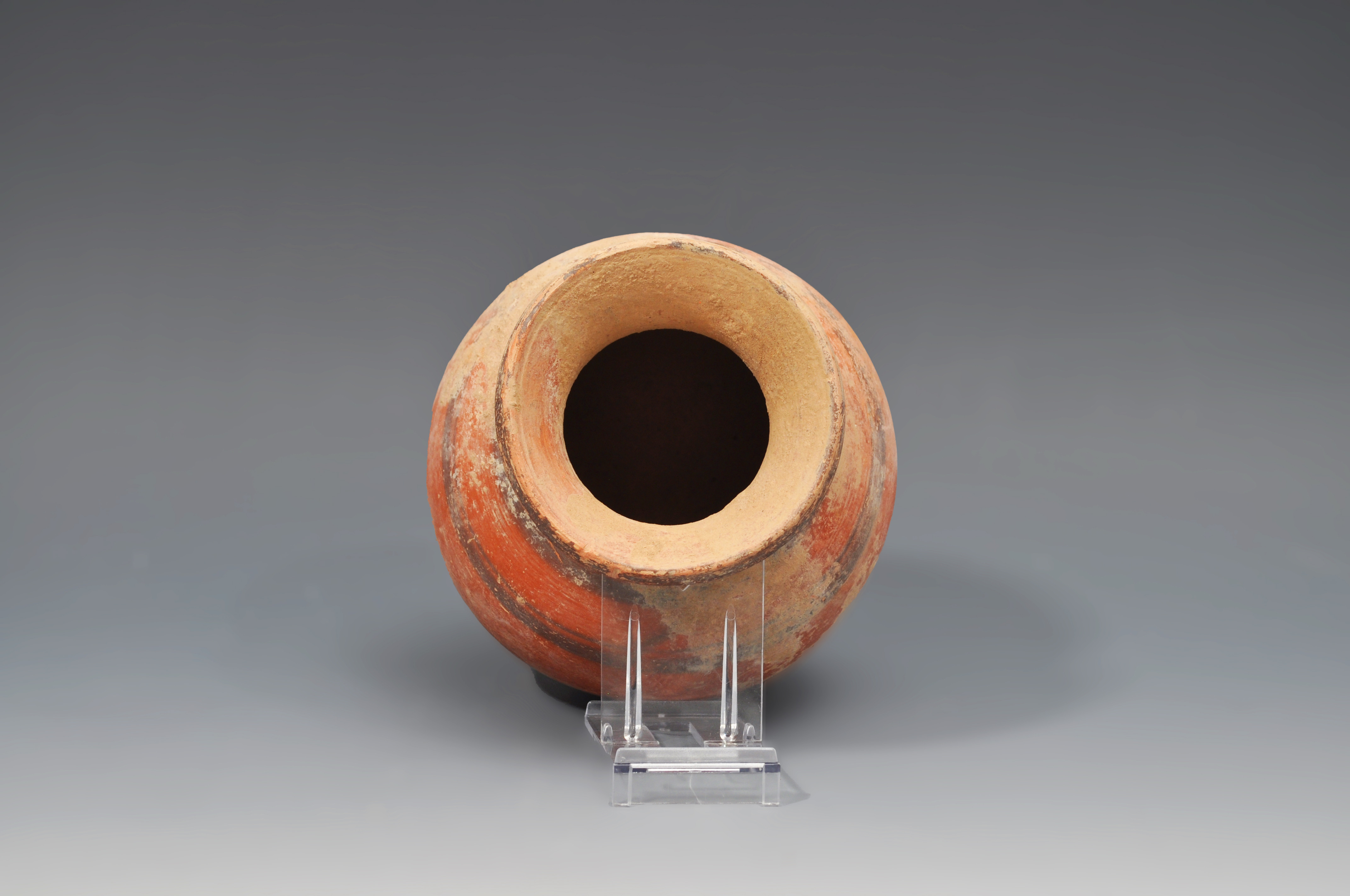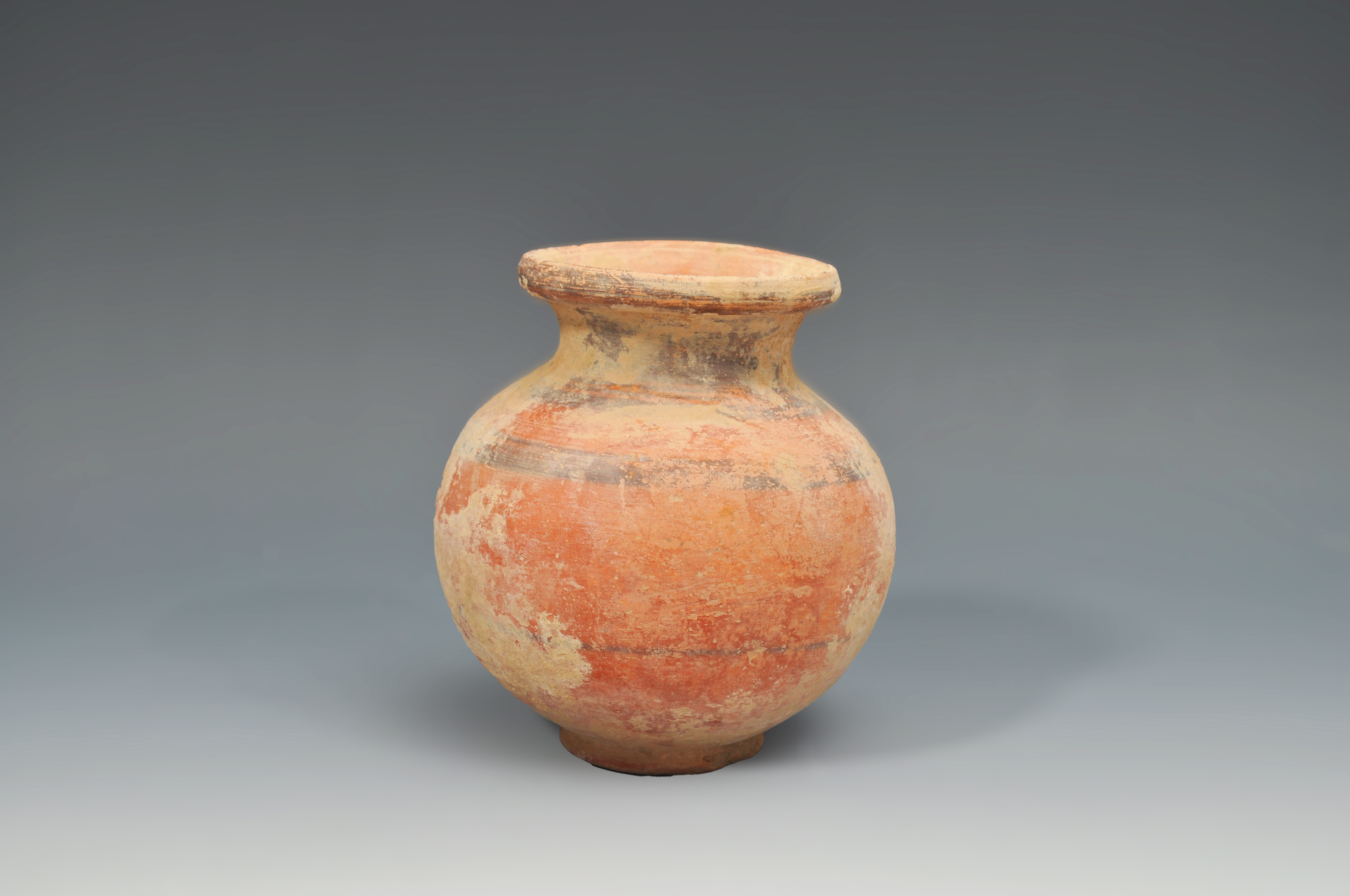 ARQUEOLOGÍA. PRÓXIMO ORIENTE. Vasija con decoracion de lineas negras (II-I milenio a.C.). Cerámica. Altura 14 cm. Diámetro 8,5 cm.