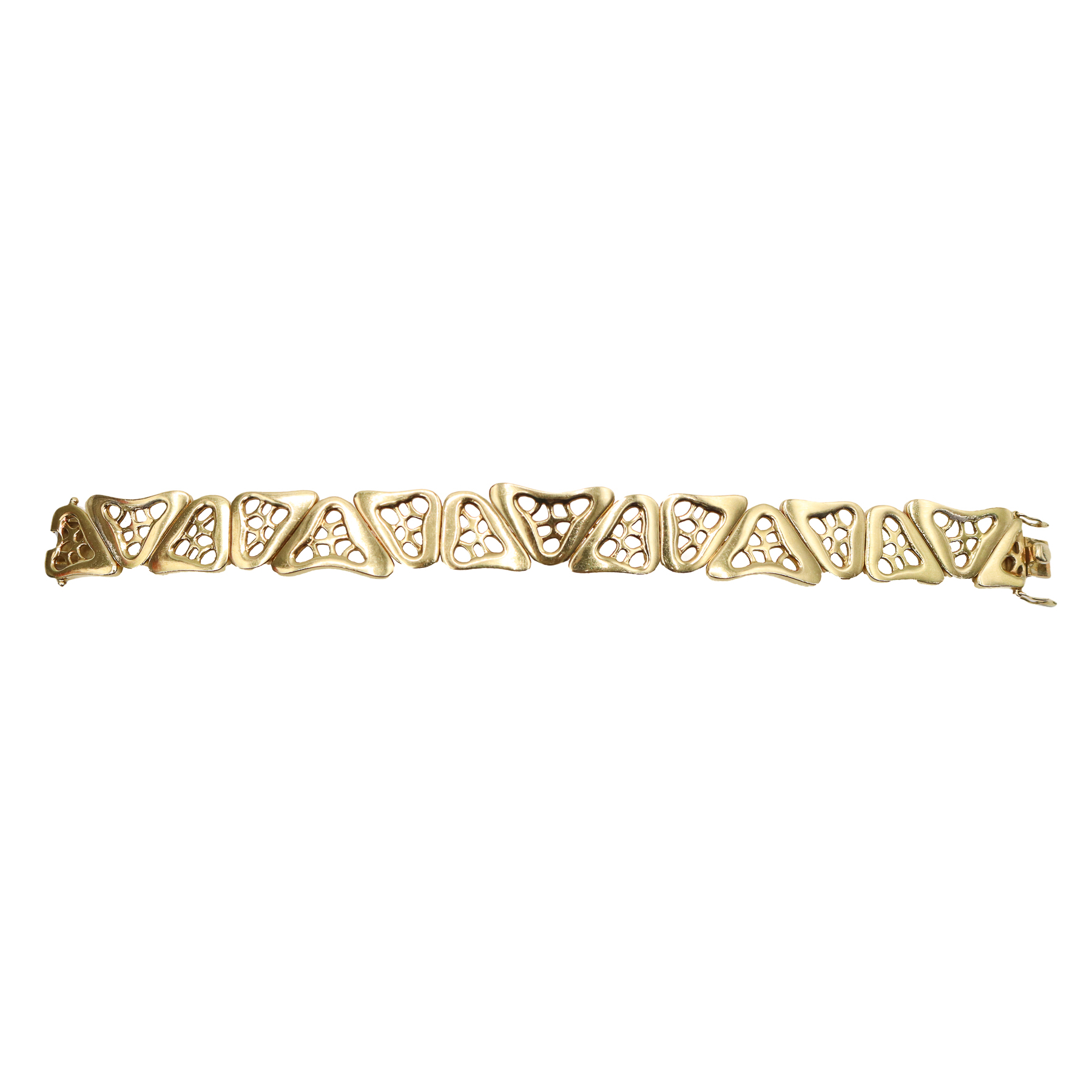 Pulsera con eslabones de diseño orgánico, en oro amarillo de 18 kt. Cierre de lengüeta con doble ocho de seguridad. Longitud: 18 cm. Peso: 37,6 gr.