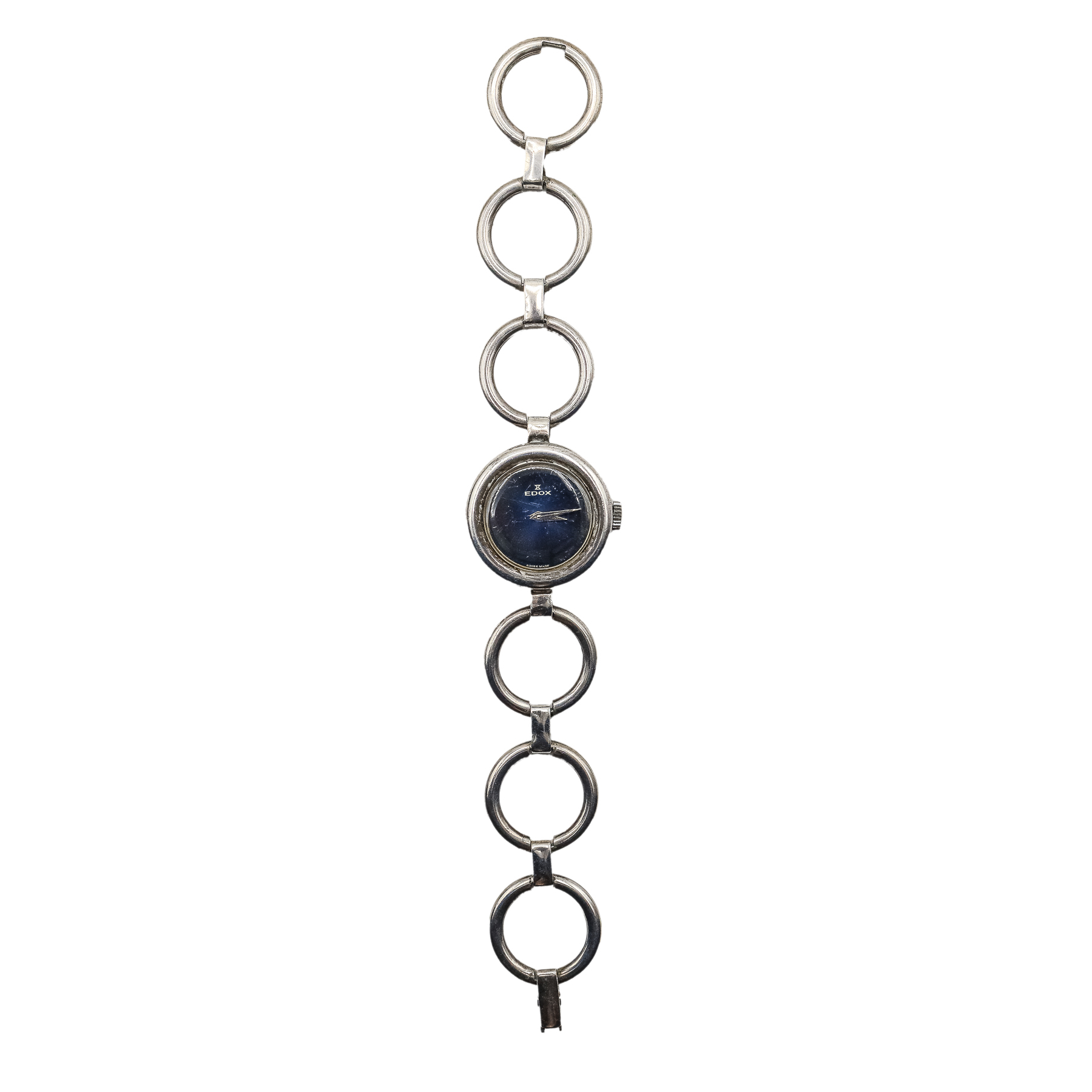 De la marca Edox. Caja y pulsera en plata de 800 milésimas. Movimiento a cuerda.